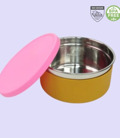 Δοχείο Φαγητού Ανοξείδωτο/Σιλικόνη Ροζ/Μουσταρδί 1000ml