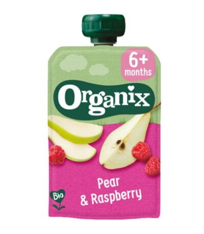 Βιολογικός Φρουτοπολτός Αχλάδι & Σμέουρο (+6μ) 100γρ – Organix