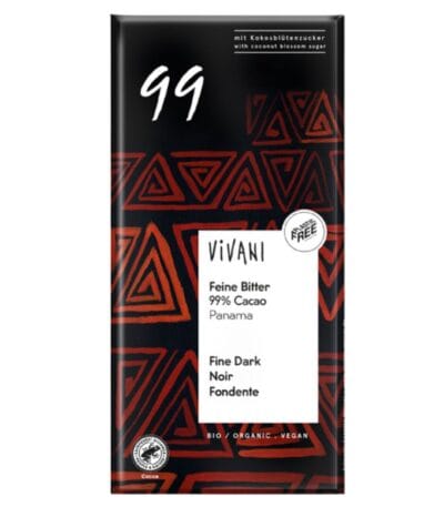Βιολογική μαύρη σοκολάτα με 99% κακάο Παναμά 80g – VIVANI
