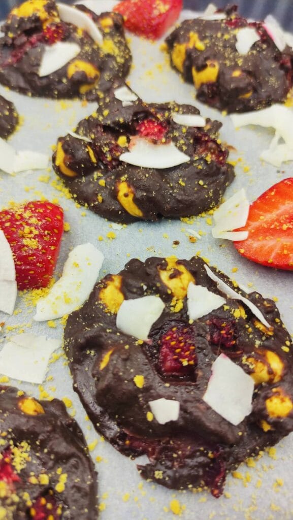- κομματάκια φράουλας (που ταιριάζουν τέλεια με τη σοκολάτα)